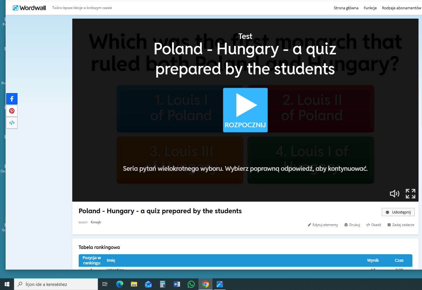 The students of the Polish and Hungarian schools watched the film and completed the quiz in April. The best ones received a small prize. We hope they learned a lot about the Polish-Hungarian cultures.