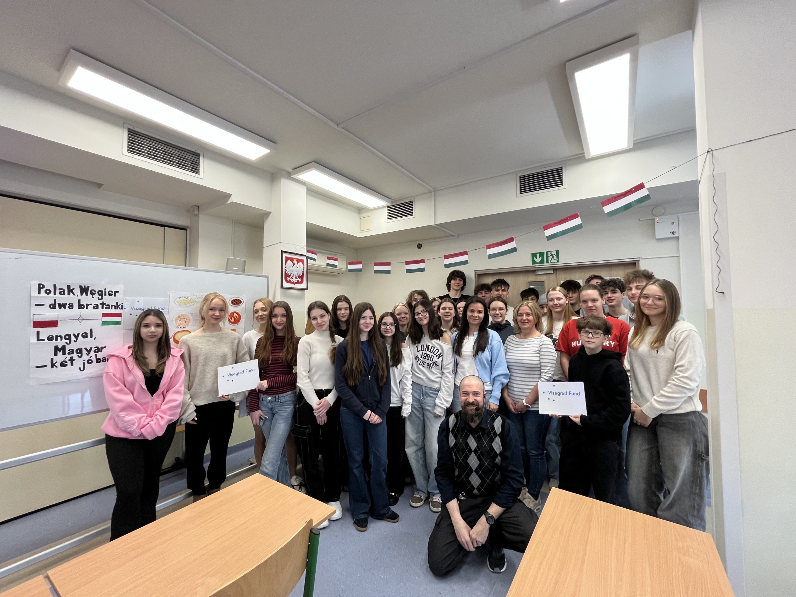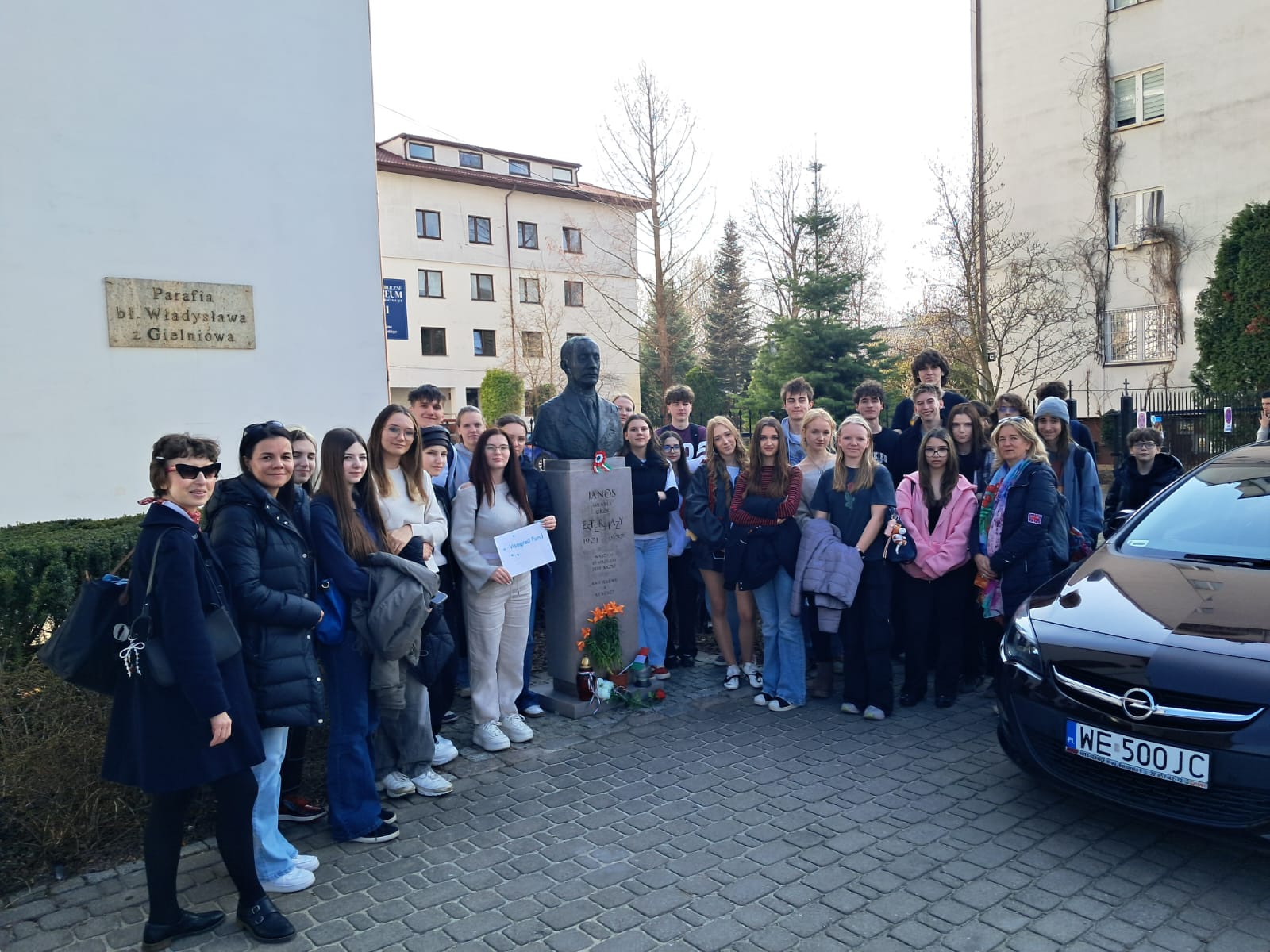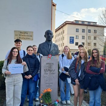 The students of the XXXVIII Liceum Ogólnokształcące im. Stanisława Kostki Potockiego school in Warsaw welcomed the Hungarian guests with great love. In the morning, short warm-up games helped them get to know each other better, then the students participated in a history lesson led by Mr. Marek Hurda. After visiting the school and enjoying a delicious, traditional Polish lunch, the students set off for Ursynów, where the monument to János Esterházy, a Czechoslovak politician of Hungarian and Polish descent, can be found. The students learned that he was an open-minded person who showed extraordinary humanism in difficult times. From 1939, he supported the Poles, including by organizing the relocation of Polish soldiers to Hungary. At the end of the day, the students were able to tour Warsaw using a specially prepared map, which also included places related to Polish-Hungarian history. We would like to thank teachers Karolina Majk and Dominika Zasłona Dukielska, as well as teachers Erzsébet Torma and Edina Gál-Gazdag, and all the participating students.
